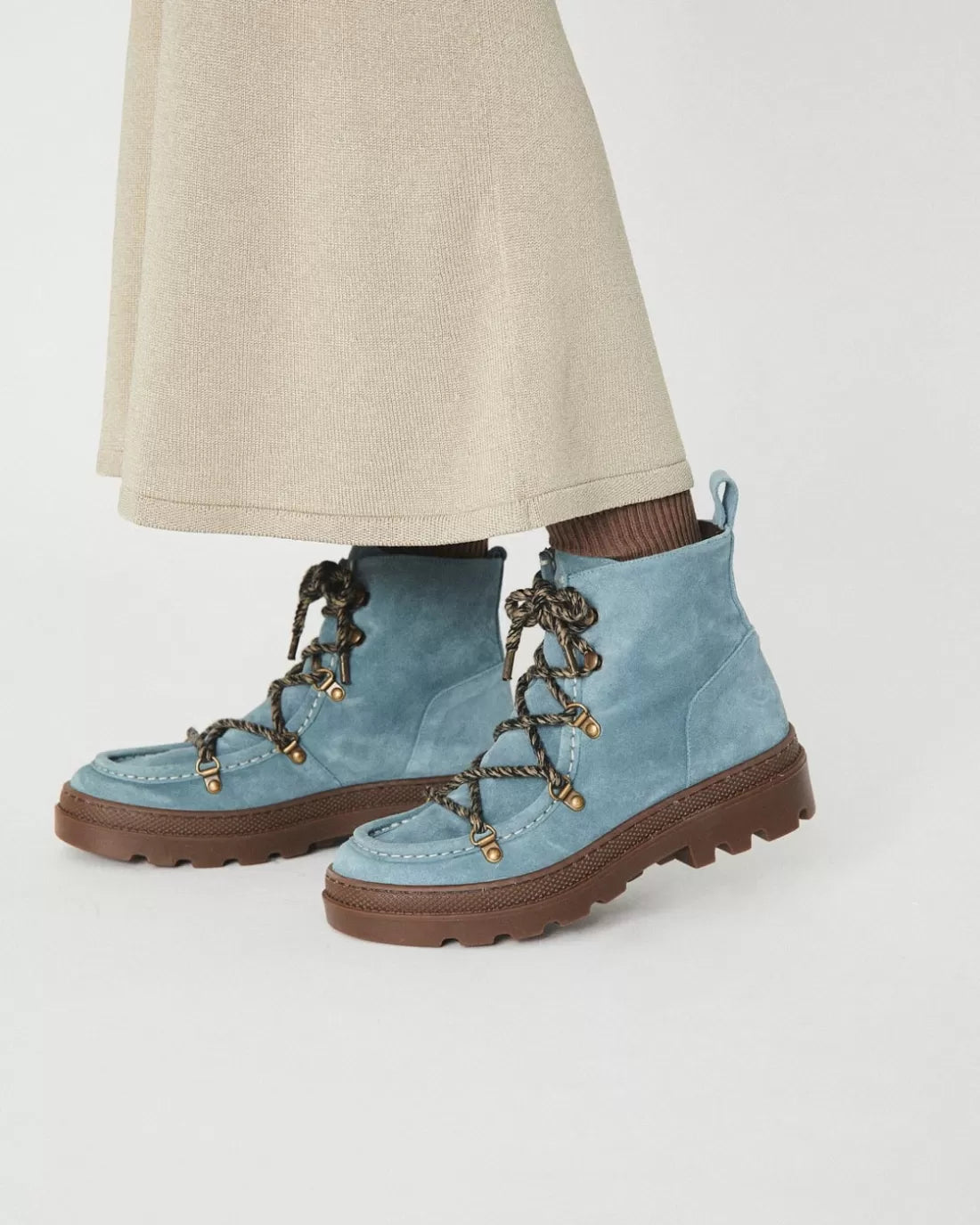 KAUS is a wallabee-style ankle boot inspired by mountain footwear. The upper is split suede with a waterproof treatment. Thick TR track sole. Cotton laces in a contrasting color. Fabric lining. Removable foam insole. Sole height of 3.5 cm for enhanced back comfort.
